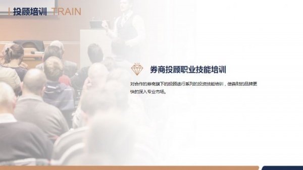 對合作的券商旗下的投顧進行系列的投資技能培訓,使犇財的品牌更快的深入專業市場。